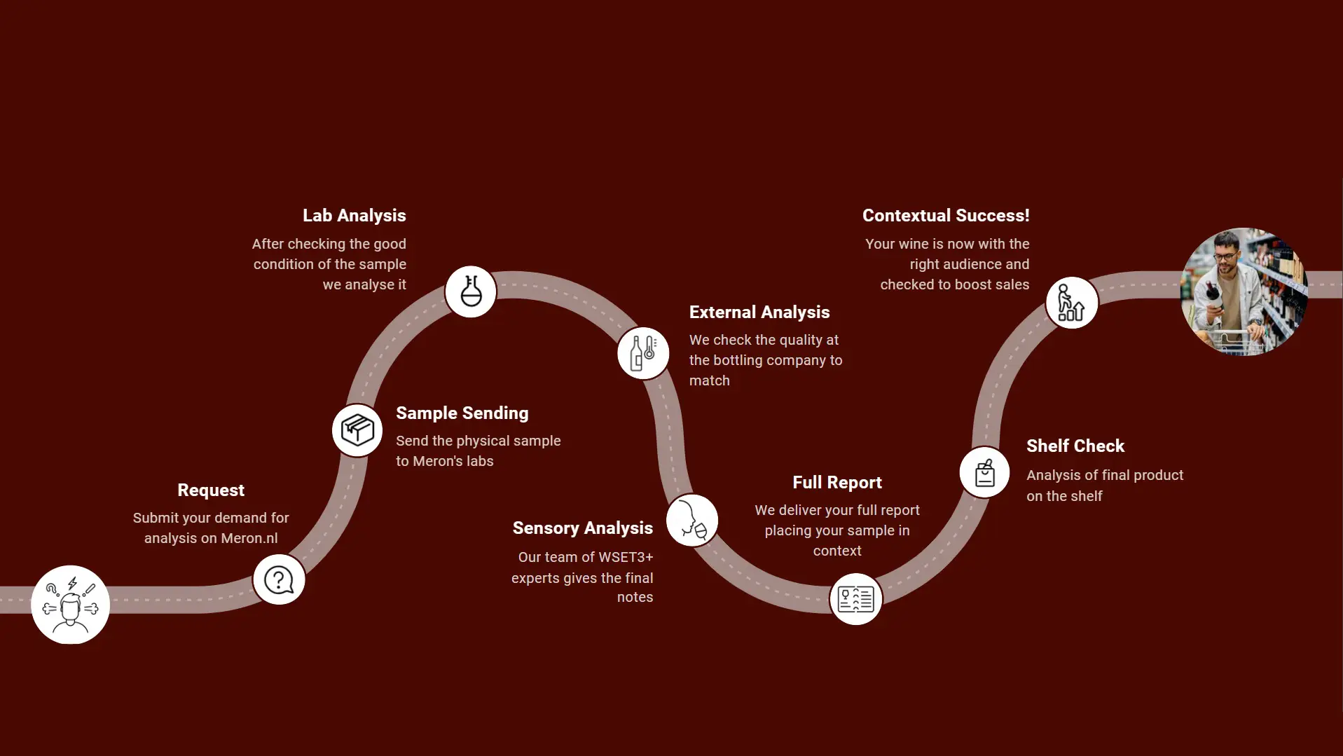 Fully compliant with WSET guidelines, 95% machine accuracy and 5% from Meron’s passionate tasting panel